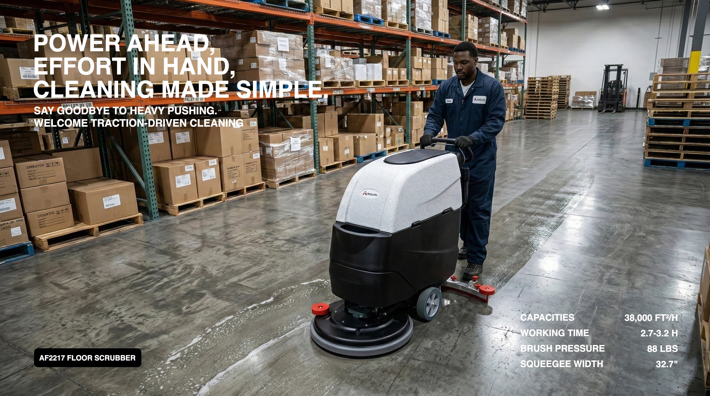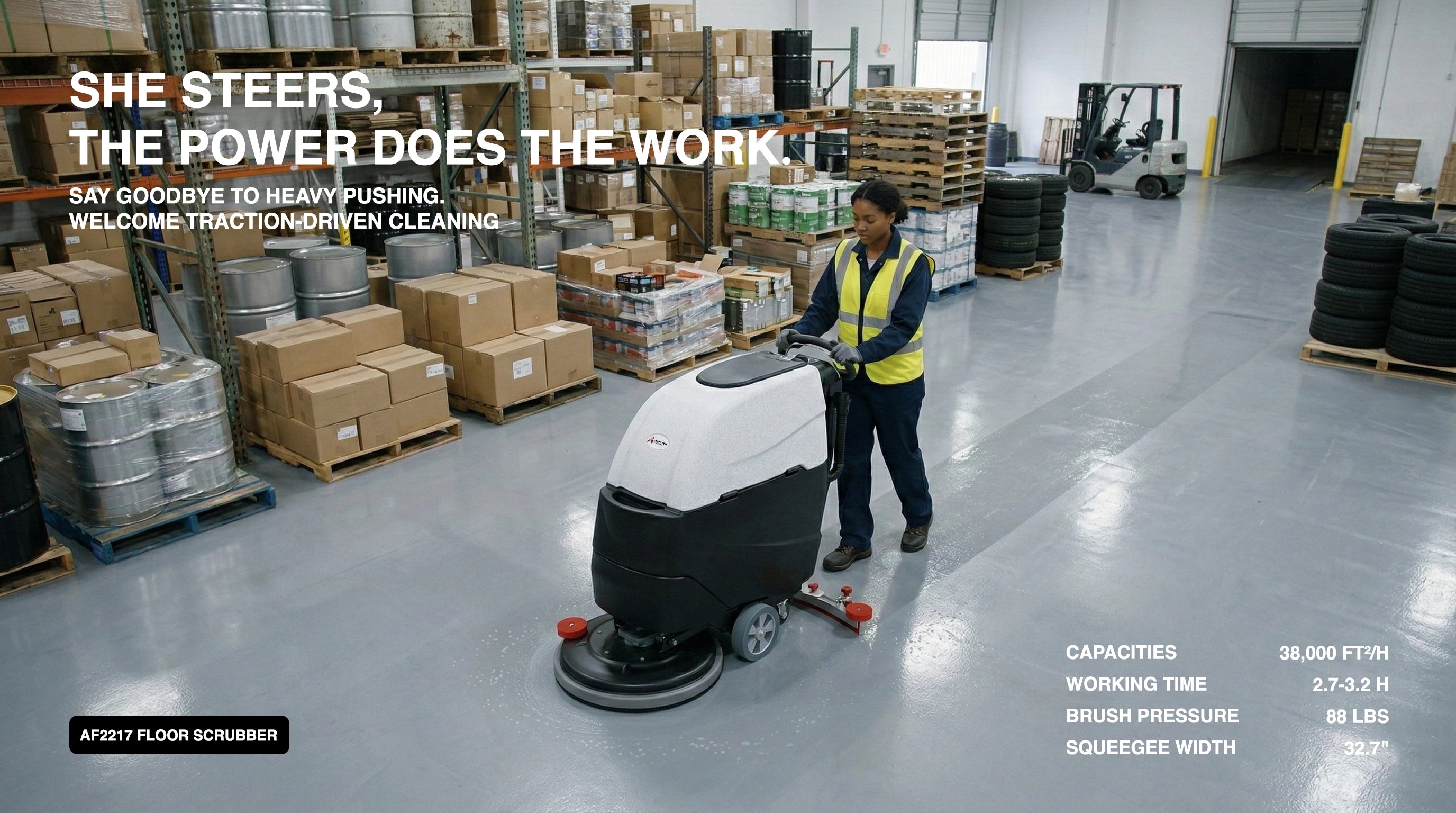 AF2217 Self-Propelled Floor Scrubber – 22” Cleaning Width, 17 Gal Lithium Tank